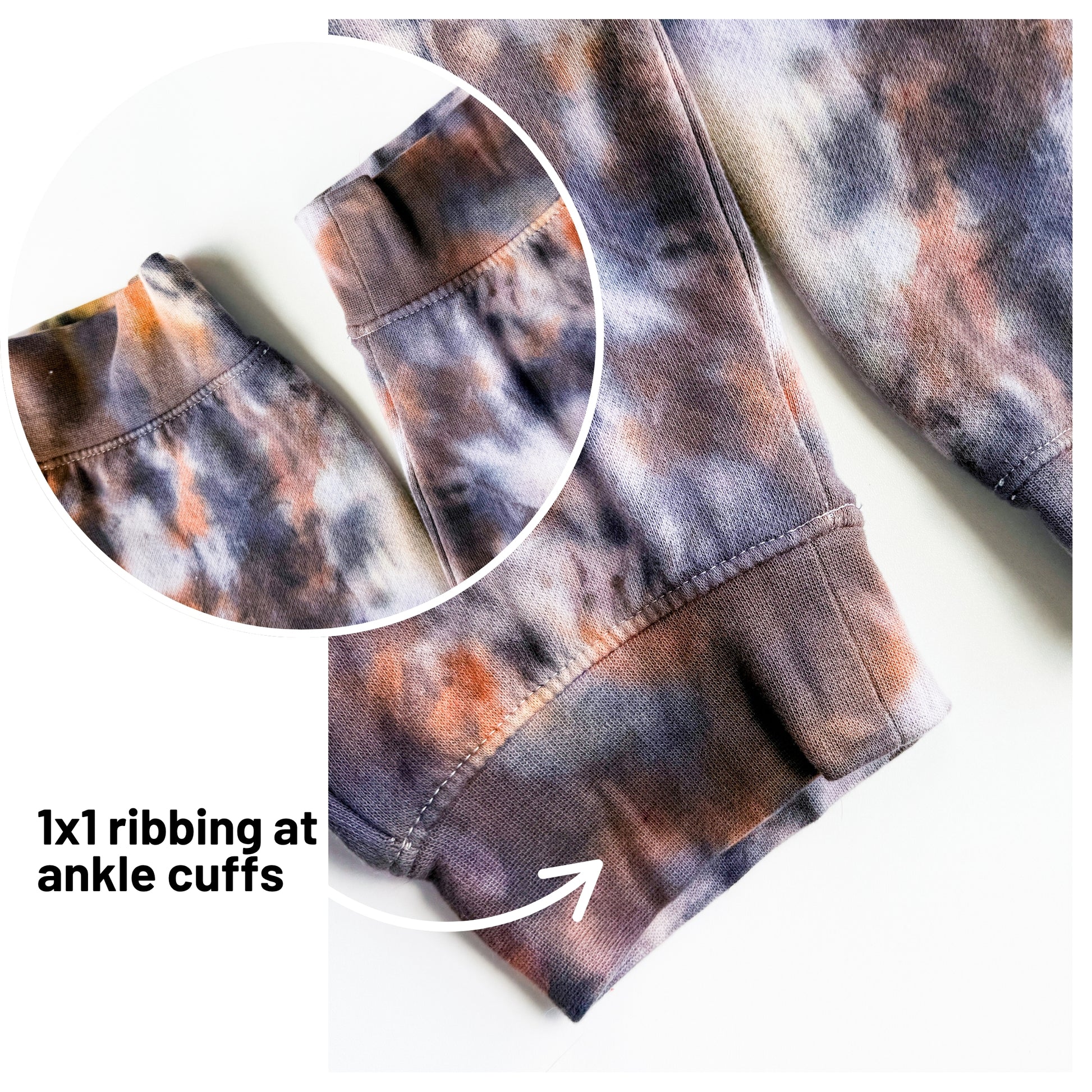 - One-of-a-kind design – Due to the custom dyeing process, no two sweatpants will be exactly the same! The tie-dye pattern will appear in different locations on each pair, making yours truly unique.